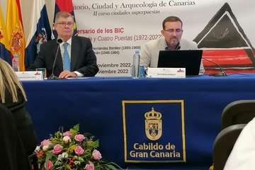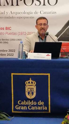 Galindo participó el sábado por la tarde, a las 16.40 horas aproximadamente, en la mesa presidida por el historiador y cronista oficial de Telde, Antonio González Padrón, bajo el título Territorio: Bienes de interés cultural, el patrimonio arqueológico, la gestión y la difusión.