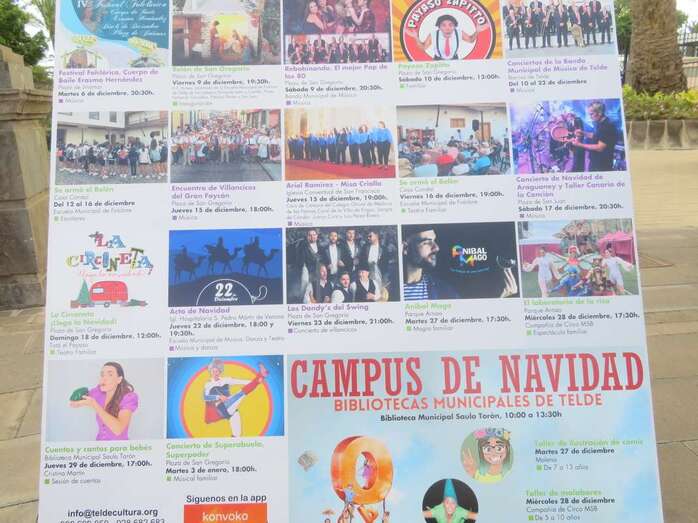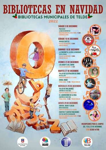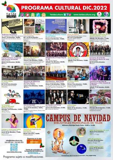 La amplia y variada programación recupera eventos anteriores a la pandemia como el Campus de Navidad, que se llevará a cabo en las Bibliotecas Municipales de Telde entre los días 27 y 29 de diciembre, e incluye una oferta cultural conformada por exposiciones, teatro, conciertos, presentación de libros, recitales de la Banda de Música, encuentros de villancicos, magia y actividades para niños y la familia, entre otros actos.