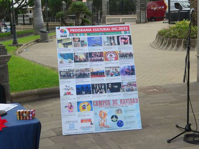 Telde desplegará unos 60 actos culturales gratuitos entre el 1 de diciembre de 2022 y el 3 de enero de 2023 durante la campaña navideña, según la programación presentada esta mañana por la alcaldesa Carmen Hernández; el concejal de Cultura, Juan Martel, y el gerente de la empresa pública Gestel, Jesús Suárez, en el parque urbano de Arnao, junto a la Biblioteca Saulo Torón.