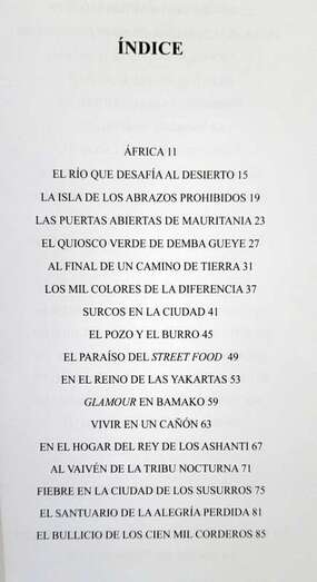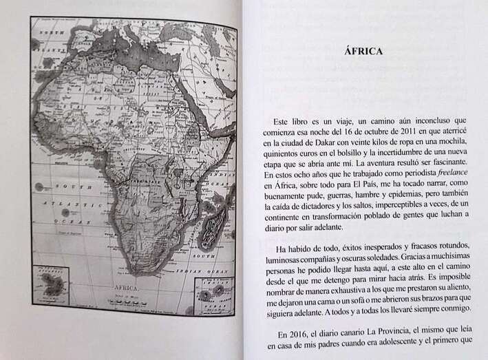 Este libro es un viaje, un camino, aún inconcluso que comenzó la noche del 16 de octubre de 2011 en que aterricé en la ciudad de Dakar con veinte kilos de ropa en una mochila, quinientos euros en el bolsillo y la incertidumbre de una nueva etapa que se abría ante mí. La aventura resultó ser fascinante. En estos años he trabajado como freelance en África, sobre todo para El País, me ha tocado narrar, como buenamente pude, guerras, hambre y epidemias, pero también la caída de dictadores y los saltos, imperceptibles a veces, de un continente en transformación poblado de gentes que luchan a diario por salir adelante.