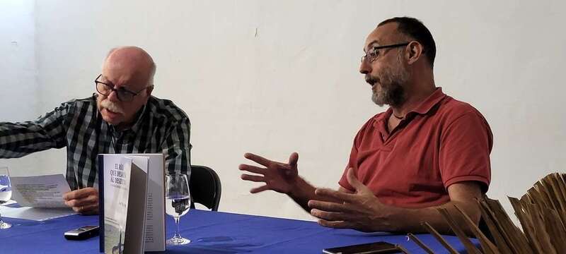 De la mano de Fernando Ojeda, miembro de la Junta Directiva del Círculo Cultural de Telde, que en la tarde del jueves 24 en la sede de la entidad cultural ubicada en el Molino del Conde, inicia el acto de presentación y versátil entrevista y charla con el periodista José Naranjo, en un detallado adelanto informativo de su propia lectura de la obra, aportando datos, información, estadísticas, noticias, etc, en la que Pepe Naranjo describe desde la realidad sus numerosas experiencias en el continente africano:
