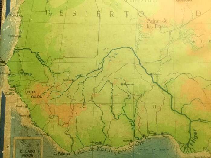 Y así comienza la crónica en la descripción de su aventura fluvial por el río Níger, el tercero más grande de África, en la ciudad de Mopti hasta la emblemática y legendaria Tombuctú en algo menos de dos días de viaje, territorios que conforman el total de su longitud, un río fascinante que nace en Fouta Djalon (Guinea) que remonta hacia Malí y luego baja hasta desembocar en la lejana Nigeria, y desde su nacimiento en la frontera entre Sierra Leona y Guinea a lo largo de 4200 kilómetros a través de Guinea, Malí, Níger, Benín y Nigeria hasta desahogar formando un gran delta en el Golfo de Guinea. La gran curva del Níger fue cuna de grandes civilizaciones como los bámbaras, mandingas.