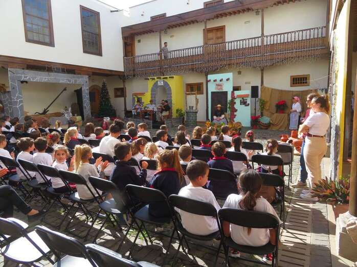 Alrededor de medio millar de escolares de diferentes centros educativos del municipio podrán disfrutar esta semana de un belén viviente en la Casa Condal, organizado por la Concejalía de Cultura del Ayuntamiento de Telde.