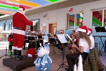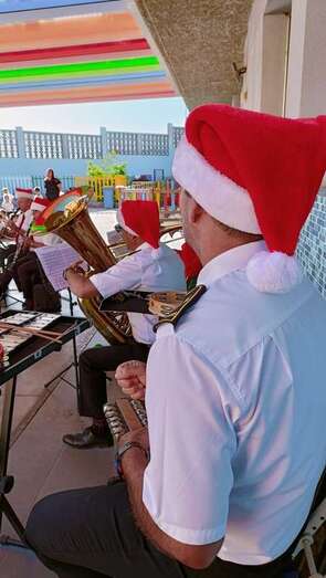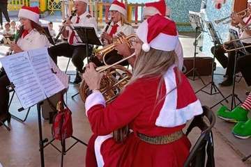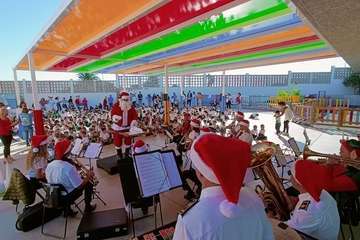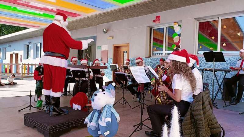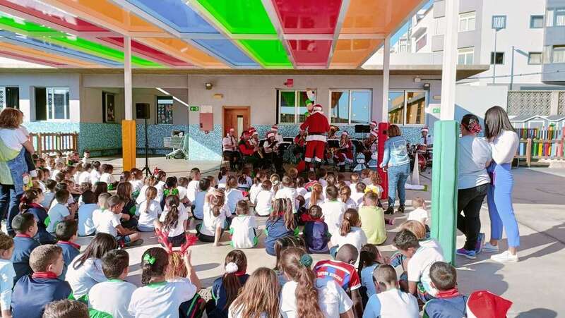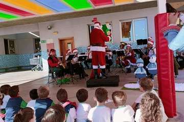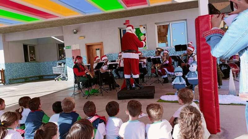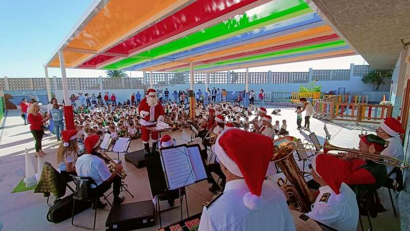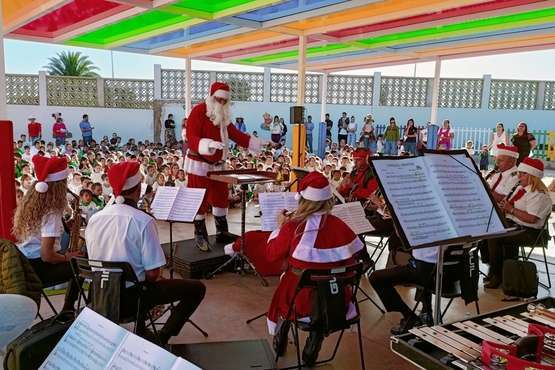La Banda Municipal de Música ofreció este jueves al mediodía un concierto de Navidad en el CEIP Fernando León y Castillo, sito en el sector poblacional de Los Picachos.