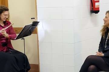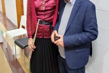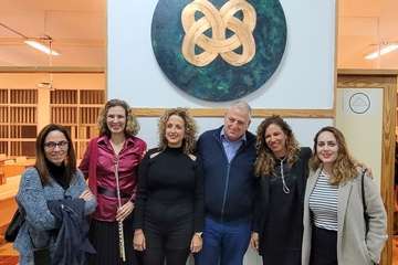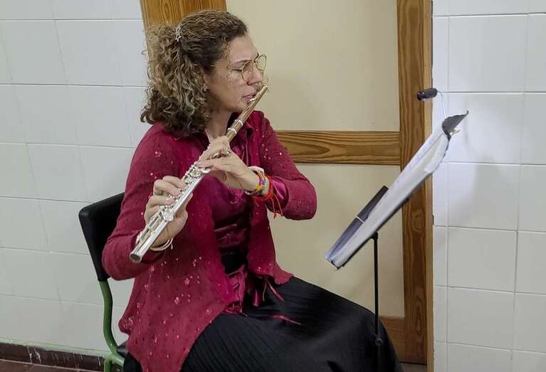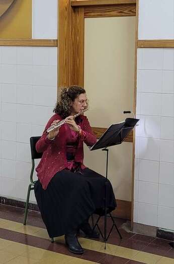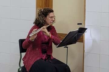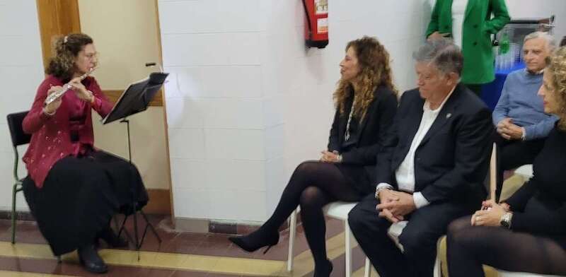 Una primera actuación musical composición para flauta abre y saluda este encuentro a cargo de Nereida Santana, coordinadora de formación y que ocupa el lugar de representación de la Sociedad Matemática en el Círculo Cultural de Telde, como entidad colaboradora por la mediación de Arístides Ramírez, que preside el escultor residente en Telde, Máximo Riol Cimas,  que nos convoca para testimoniar la entrega de una obra escultórica que en el tiempo se ha materializado, con el título Cuatro Culturas y la Geometría en la Arquitectura, que a partir de esta fecha presidirá este centro, destacada obra entre las muchas realizadas como homenajes al deporte,  artes, arquitectura, naturaleza y su protección del medio ambiente, personalidades, simbólicas, docencia, sanidad, que el artista Riol Cimas en estos últimos años ha donado como esculturas en espacios exteriores, al aire libre o en interiores, destacar su trabajo, El árbol de Hipócrates, homenaje dedicado al personal sanitario durante la crisis de la pandemia Covid 19, escultura ubicada en el barrio teldense de El Calero.