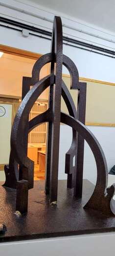 Con la arquitectura de líneas, arcos entrelazados y formas que ascienden a diferentes niveles, esta escultura a escala, que desde 2006 esperaba por su ubicación definitiva, en su momento podría y puede ser levantada en gran formato, el monumental hasta los 14 metros de altura, apreciando como en la que inauguramos hoy en su conjunto, el arco hindú, arco árabe, hebreo y el ojival cristiano, consumados en el abrazo arquitectónico del religioso por el arte. Gracias”.