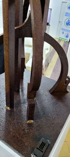 En su intervención expresa: “Trabajo escultórico realizado en acero al carbono, líneas donde se conjugan y abrazan la geometría y la arquitectura, y la especialidad matemática, como tales teorías de conjuntos y otras enseñanzas que recibí durante mi estancia en la Escuela de Aparejadores de La Laguna gracias a la docencia del profesor Luis Balbuena Castellano. Esta escultura es el reflejo, símbolo en su estructura arquitectónica y geométrica de aquella Alianza de Civilizaciones en un encuentro con la memoria y mi experiencia de haber asistido en mi infancia y adolescencia a colegios y haber vivido entre gentes de diferentes religiones y credos.