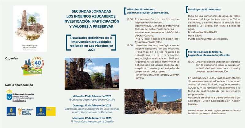Continuará el desarrollo de lo planificado el domingo 19 de febrero con una Ruta de las Cantoneras de Telde (los caminos y canales del agua) con punto de encuentro a las 9:30 horas en el Ingenio Azucarero de Los Picachos, y posterior camino hacia la Acequia Real, con bajada a La Pardilla y visita a Minas de Agua. Será esta actividad un sendero de nivel bajo familiar y de carácter gratuito, aunque requerirá inscripción previa.