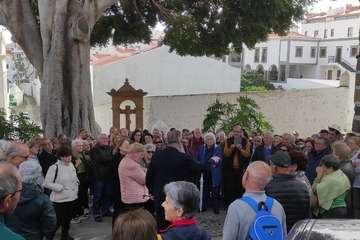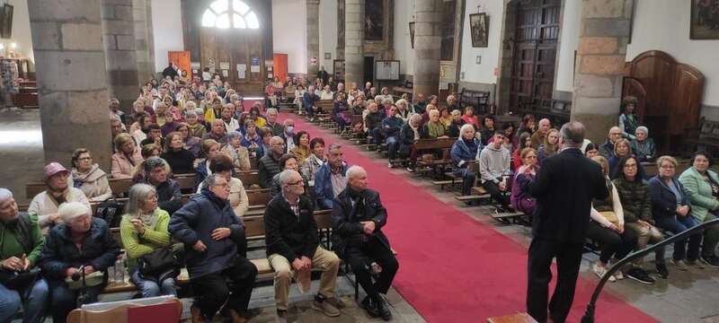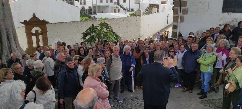 Los dos grupos, uno de Sardina del Sur y otro de Teror, Valleseco y El Palmar, llegaron a la Basílica Menor de Telde sobre las 10.00 y, después de asistir a una misa, recibieron las detalladas explicaciones de González Padrón sobre la rica historia del templo matriz de la ciudad y de la venerada imagen del Santo Cristo del Altar Mayor.