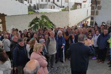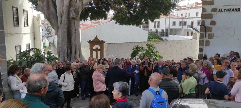 El cronista oficial de Telde e historiador, Antonio María González Padrón, ofició este martes de guía a dos grupos de peregrinos conformados por 260 personas en su recorrido por el casco histórico de la ciudad.