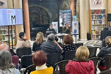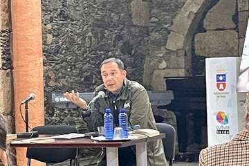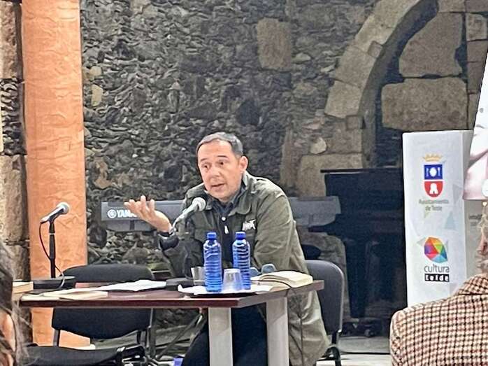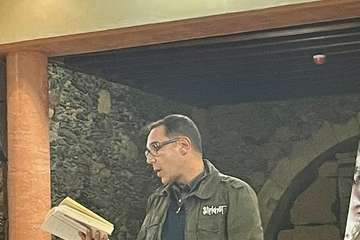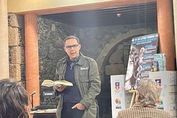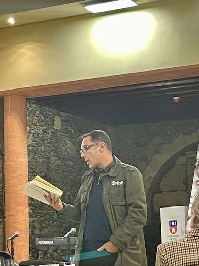 El conferenciante, Victor Alamo de la Rosa. Nació en el año lunar de 1969, quizás por eso su vida transcurre entre dos islas canarias, El Hierro y Tenerife. Su obra literaria es amplia, variada, fascinante, sin miedo a los géneros literarios: diez novelas, cinco poemarios, dos libros de relatos, ensayos, artículos. Tocar todos los palos es cosa suya. Traducido a muchos idiomas, incluido el croata, su trayectoria está jalonada de premios literarios. Un abismo sin brújula.