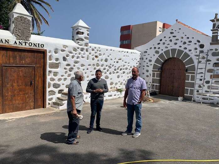 El edil visitó este miércoles la ermita y su entorno para comprobar de primera mano el avance y conoció junto al capataz del grupo de trabajo y al representante vecinal Antonio Santana las tareas que quedan pendientes y la hoja de ruta marcada para ejecutarlas.