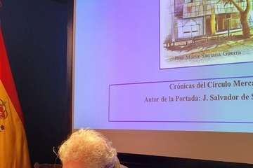 Finalizada la intervención de don Emilio Regidor, Santana Guerra, autor del libro expone: “El camino recorrido después de años de investigación remitiéndonos a tiempos pasados y a la configuración social y cultural de la ciudad de Las Palmas de Gran Canaria. Fruto de mirar y escudriñar los archivos documentales del Mercantil a través de legajos, actas, cartas, notificaciones, etc. aclara toda una actividad comercial, social, y cultural que realizo durante décadas esta veterana Entidad.