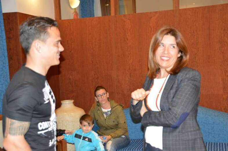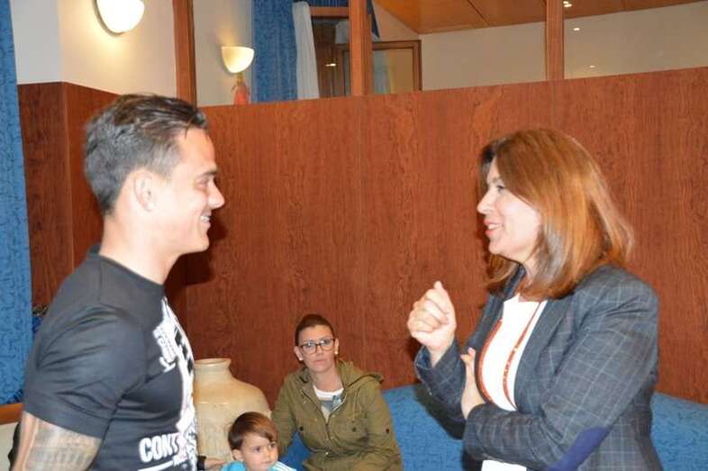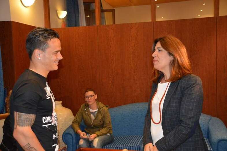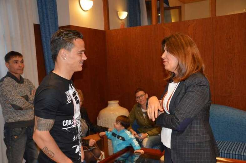 Telde.- La alcadesa Carmen Hernández recibió esta tarde al teldense Roque Mesa, jugador de la Unión Deportiva Las Palmas y vecino del barrio costero de La Garita al que calificó como todo un referente para el municipio y sus deportistas.