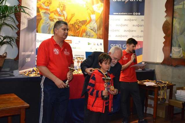 En la clausura y entrega de premios estuvieron Jerónimo Barrera, delegado de Ausban Canarias; Juan Viera, vicepresidente de la Federación de Ajedrez de Gran Canaria, presidente del Club Telde Los Llanos y director del torneo, y Ricardo Viera Suárez, árbitro principal del torneo