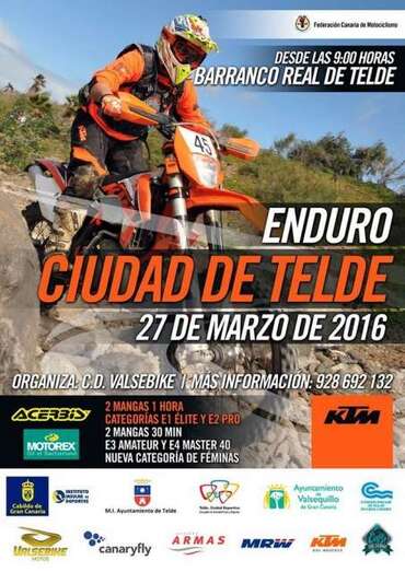 Telde.- Este domingo, 27 de marzo, se celebra en el cauce bajo del Barranco Real de Telde una nueva prueba de enduro. Para muchos amantes de las dos ruedas, se trata de unas las competiciones de referencia de esta disciplina de motor en Canarias. El evento, que lleva por nombre 'Enduro Ciudad de Telde', arrancará a partir de las 9.00 horas. La prueba es valedera para el campeonato regional de Enduro, está organizada por el Club Deportivo Valsebike y cuenta con el apoyo de le Federación Canaria de Motociclismo.