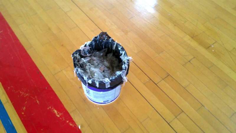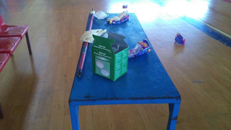 Hasta ayer miércoles, aseguran desde UxGC, operarios municipales intentaban eliminar los retos de pegamento que quedaban en la citada cancha. Todo apunta a que estos trabajadores no contaban con las necesarias medidas de seguridad para realizar las tareas, y que estaban quitando el pegamento con gasolina y mascarillas no habilitadas para tal uso, advierten desde la formación insularista. Al igual que las herramientas y la seguridad del recinto, que disponen de extintores de incendio caducados.