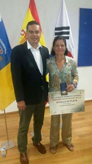 Telde.- La deportista teldense Yolanda Santana Vega, olímpica en los Juegos de Seúl 88, recibió este sábado la Medalla de Plata al Mérito Deportivo 2015de la Real Federación Española de Taekwondo, en un acto que lugar en el salón de eventos del Estadio Gran Canaria y al que asistió el concejal delegado de Deportes, Diego Ojeda. TA avanza imágenes.