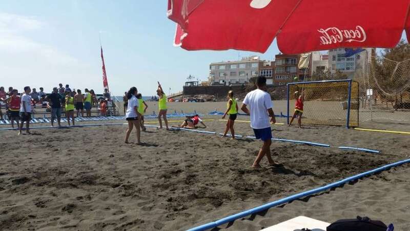 Seis equipos participaron en el torneo que arrancaba a las 11 de la mañana en una cancha habilitada sobre la arena de la playa de Melenara, en su extremo sur.