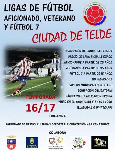 Telde.- El Patronato de Fiestas La Concepción y la Caña Dulce organiza nuevas ligas deportivas en Telde en las modalidades de modalidades de Veteranos (+35 años), Aficionados (+25 años), Fútbol 7 y Futbol Sala, en colaboración con la Concejalía de Actividad Física y Deportes del Ayuntamiento de Telde.