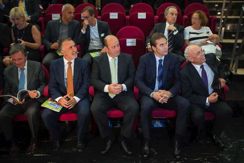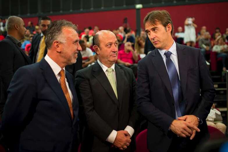 El seleccionador nacional Julen Lopetegui, junto a directivos de clubes de Telde (Foto TA) El seleccionador nacional Julen Lopetegui, junto a directivos de clubes de Telde (Foto TA)