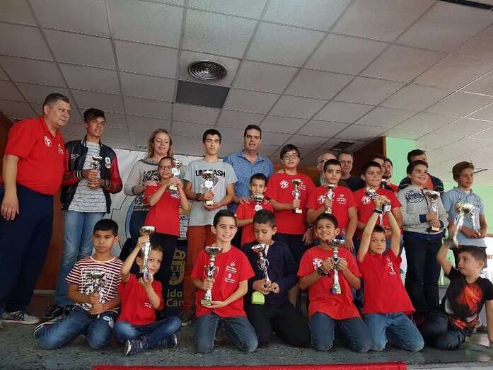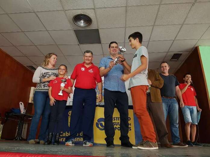 Telde.- La Sociedad Cultural y Recreativa La Fraternidad fue escenario este domingo de la XVIII edición del Torneo de Ajedrez Escolar Memorial Juan Martín de la Nuez, organizado por el Club de Ajedrez Telde Los Llanos. A la entrega de trofeos a los ganadores asistieron el concejal de Deportes, Diego Ojeda, y Sonsoles Martín, hija del recordado ajedrecista. TA avanza imágenes.