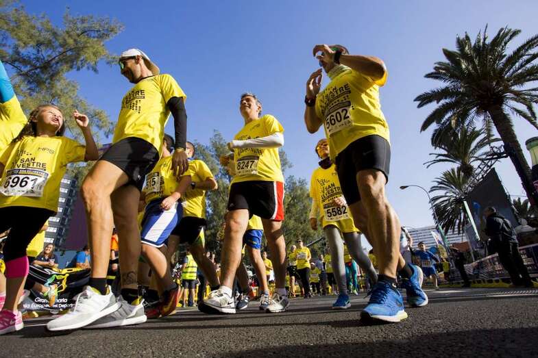 Unos 10.000 corredores participaron en la Hospital Perpetuo Socorro San Silvestre Las Palmas de Gran Canaria 2016. Una gran marea amarilla despidió el año a golpe de zapatilla por las calles de la capital grancanaria, que se abarrotaron de solidaridad en la última carrera del año.