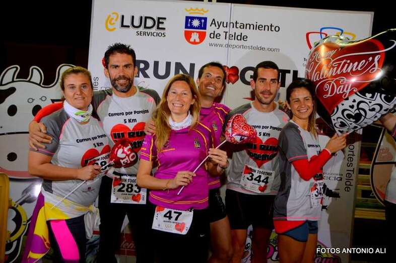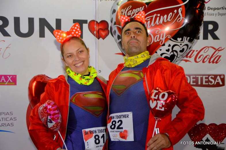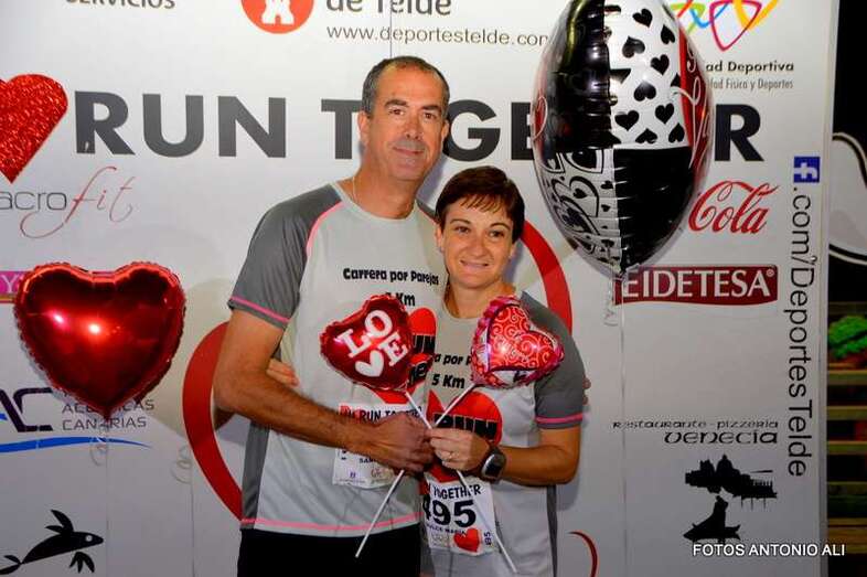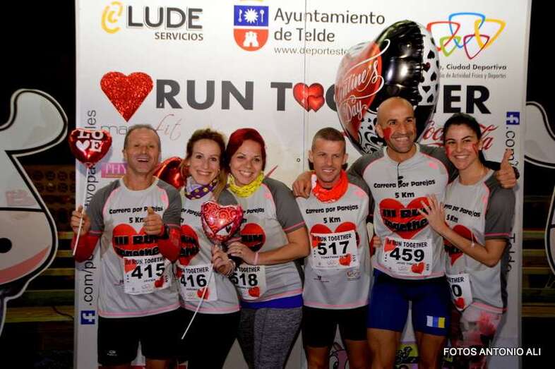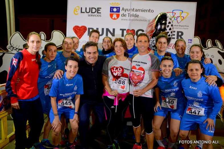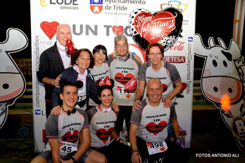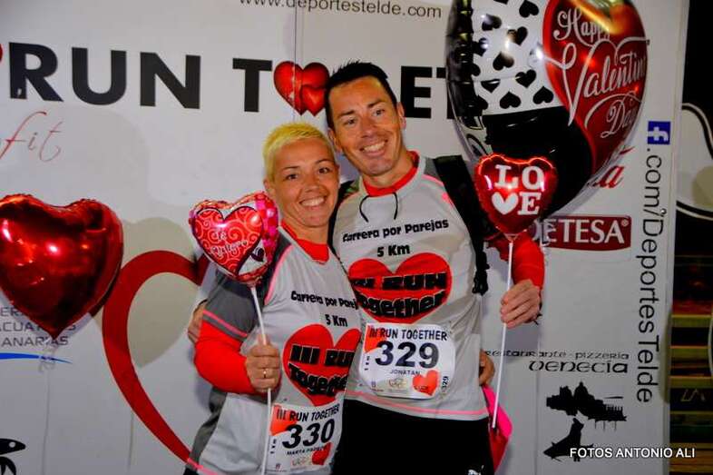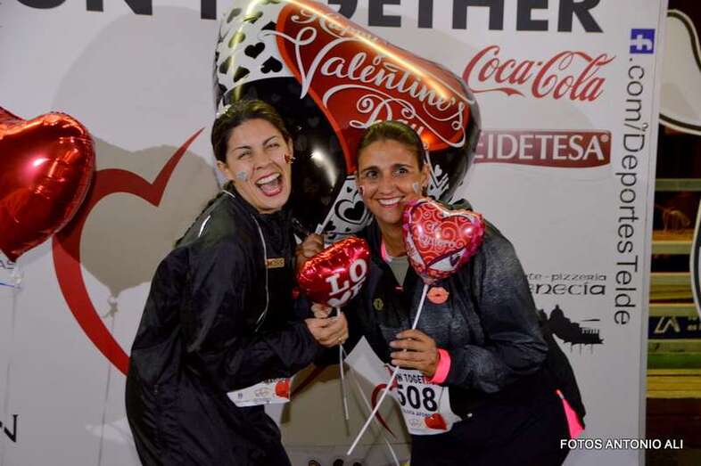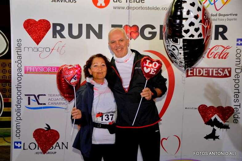 Telde.- Cupido se enfundó esta noche el chándal y las zapatillas y se apresuró a intervenir en la Run Together, la carrera nocturna por parejas que la Concejalía de Deportes organiza con gran éxito de organización y participación por tercer año consecutivo para celebrar el Día de San Valentín. Hasta la alcaldesa de Telde, Carmen Hernández, no quiso perderse este evento deportivo y se sumó al hervidero de amantes del running.
