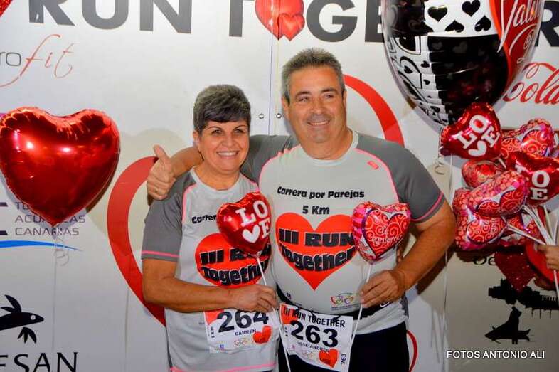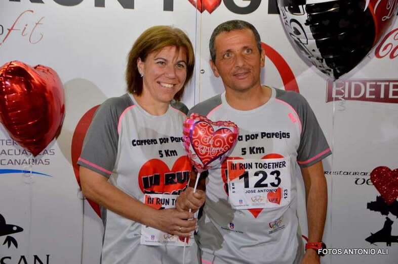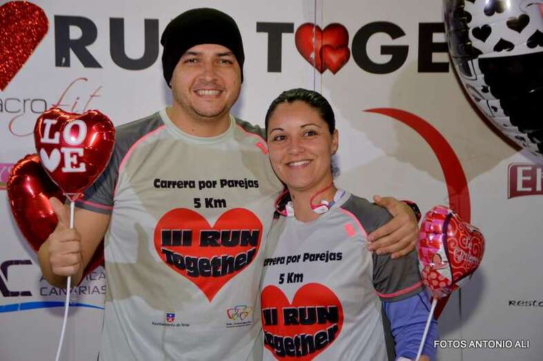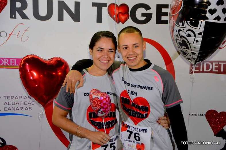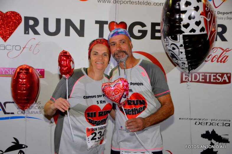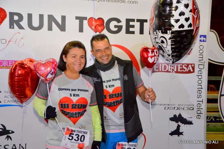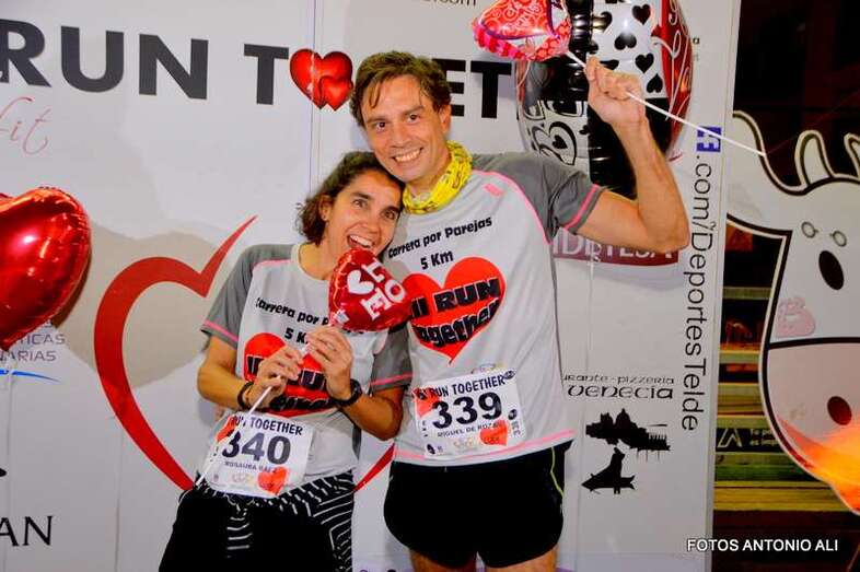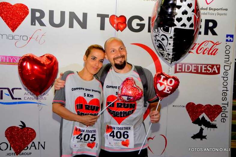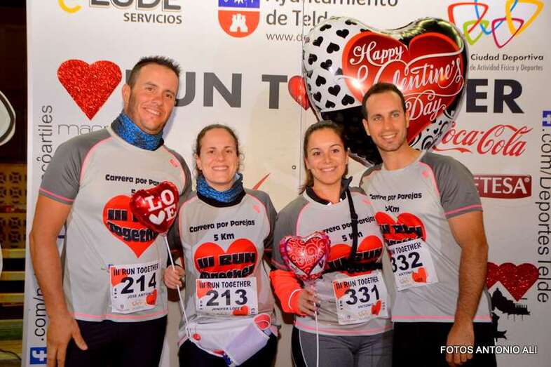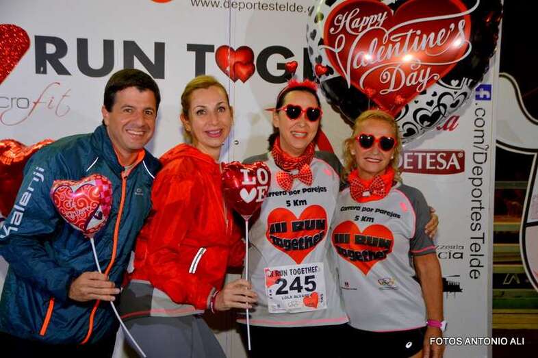 Telde.- Cupido se enfundó esta noche el chándal y las zapatillas y se apresuró a intervenir en la Run Together, la carrera nocturna por parejas que la Concejalía de Deportes organiza con gran éxito de organización y participación por tercer año consecutivo para celebrar el Día de San Valentín. Hasta la alcaldesa de Telde, Carmen Hernández, no quiso perderse este evento deportivo y se sumó al hervidero de amantes del running.