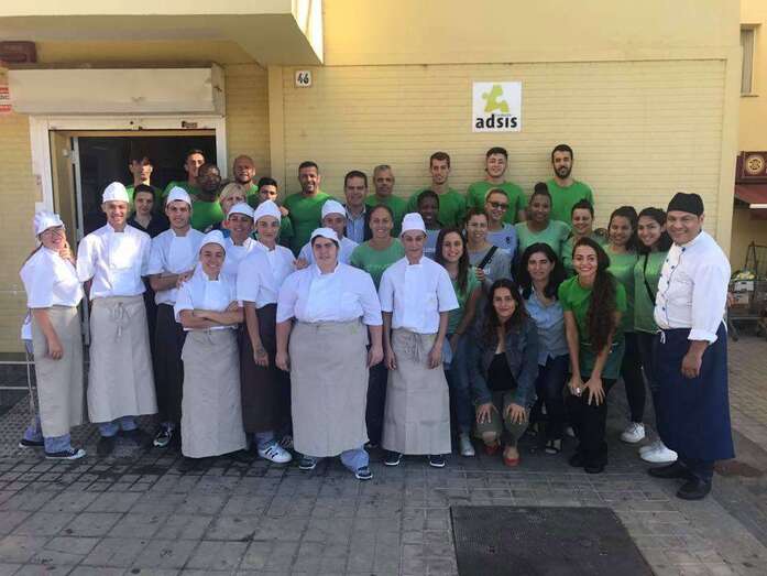 Los integrantes de uno de los talleres de Formación Profesional Ocupacional de Adsis especializado en cocina y hostelería mostraron sus desrrezas confeccionando y sirviendo un suculento menú que sirvió para que las pupilas de Antonio Moreno, que ya se encuentran inmersas en la preparación de la Copa de la Reina (competición que disputarán este fin de semana en la localidad gallega de O Porriño) cargaran las pilas antes del entrenamiento que eta noche, de 20 a 22 horas, llevarán a cabo en el Centro Insular de Deportes (CID) y al encuentro amistoso a domicilio de mañana frente al juvenil masculino del Gáldar.
