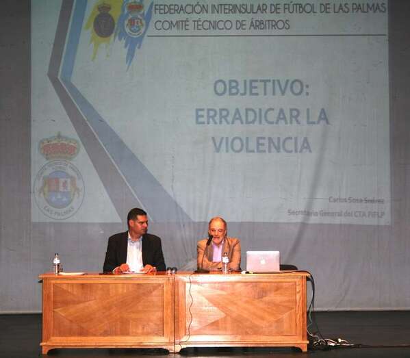 Organizado por la Concejalía de Actividad Física y Deportes del Ayuntamiento de Telde, el evento contó como ponentes con el comisario de la Policía Nacional en Telde, Jesús García Aller; el secretario del Comité Técnico de Árbitros de la FIFLP, Carlos Sosa Suárez; el vicesecretario de la FIFLP, Daniel Pita Dominguez; en representación de la Asociación Unificada de Guardia Civiles José Agustín Marrero López, el director de captación y formación de la UD Las Palmas, Manuel Rodríguez ‘Tonono’; y Rubén Alcazar Morán, abogado de la UD Las Palmas.
