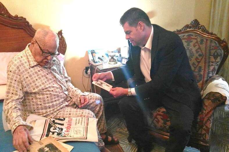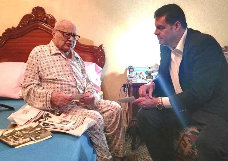 Nacido en la calle Ruíz de Los Llanos el 11 de mayo de 1922, este teldense, empleado de la banca de profesión, es toda una fuente de recuerdos y sabiduría sobre la ciudad de Telde, tanto del ámbito deportivo como del social. Con 95 años a sus espaldas presume de una lucidez asombrosa, tal y como estos días pudo comprobar el concejal de Actividad Física y Deportes del Consistorio local, Diego Ojeda, quien quiso rendir un pequeño homenaje en forma de visita a su hogar.