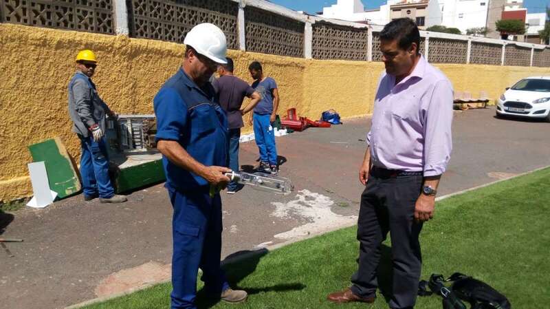 Las obras que ahora se acometen se encuentran presupuestadas en 30.000 euros y se afrontan “gracias a la línea de colaboración entre la Concejalía de Alumbrado, que coordina Agustín Arencibia, y Deportes”, precisa Ojeda.