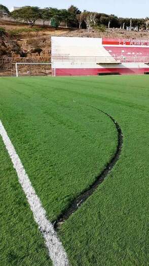 El estadio de Melenara fue objeto de actos vandálicos que se cebaron en el levantamiento de la alfombra verde no natural y en el campo de Ojos de Garza se produjo un hundimiento, también su césped.