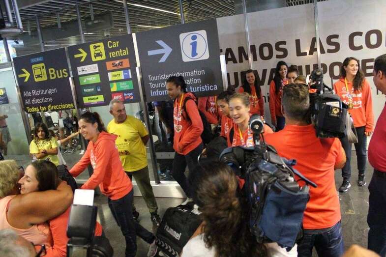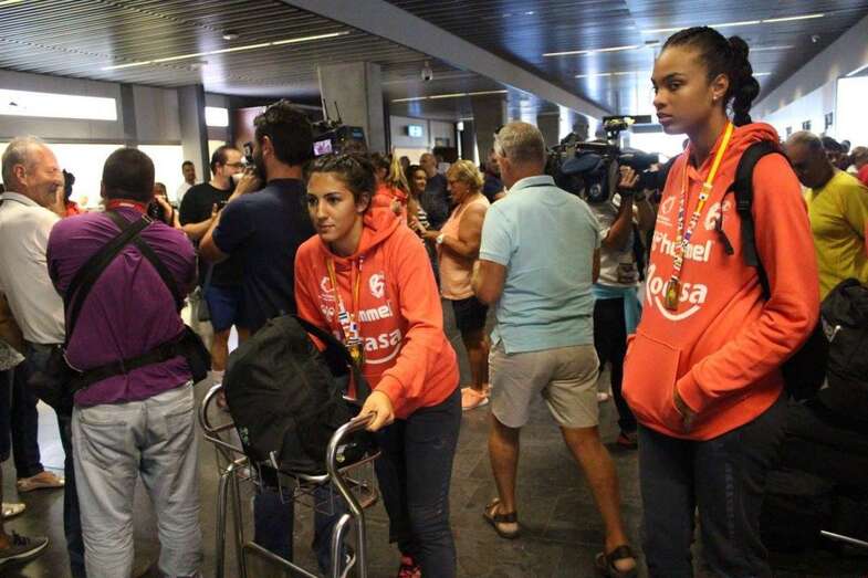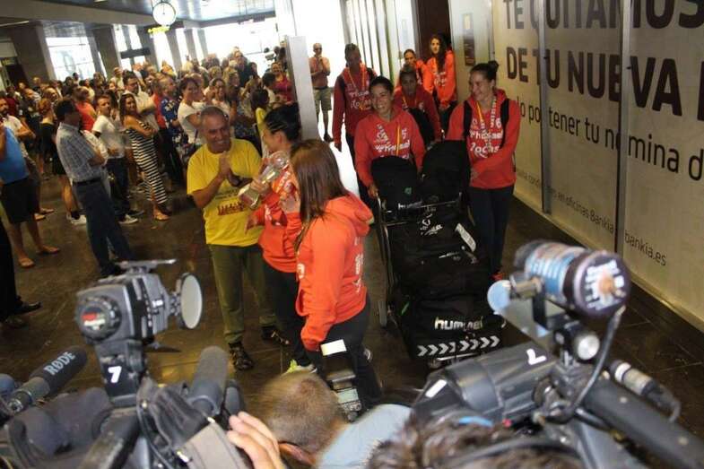 Los agasajos se iniciaron ya este domingo cuando un grupo próximo a las cien personas, entre familiares, amigos y aficionados, esperaban en el aeropuerto de Gran Canaria a las gladiadoras del presidente y entrenador Antonio Moreno.