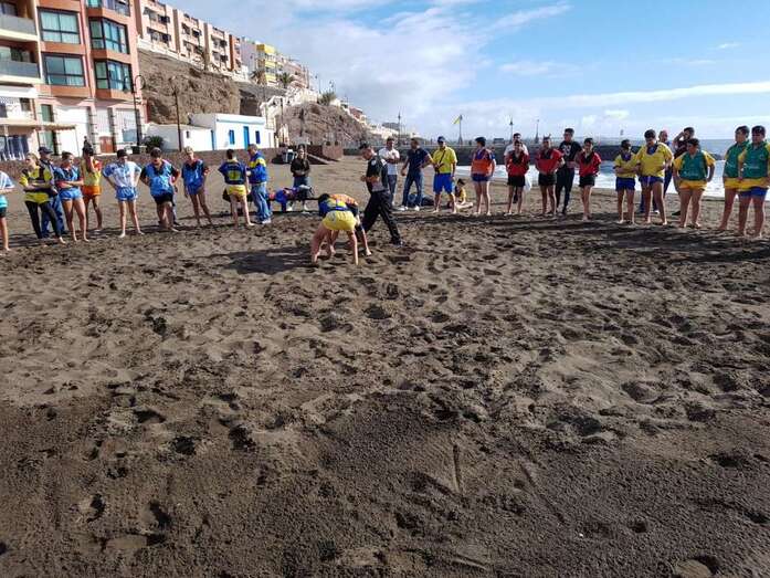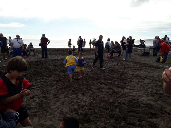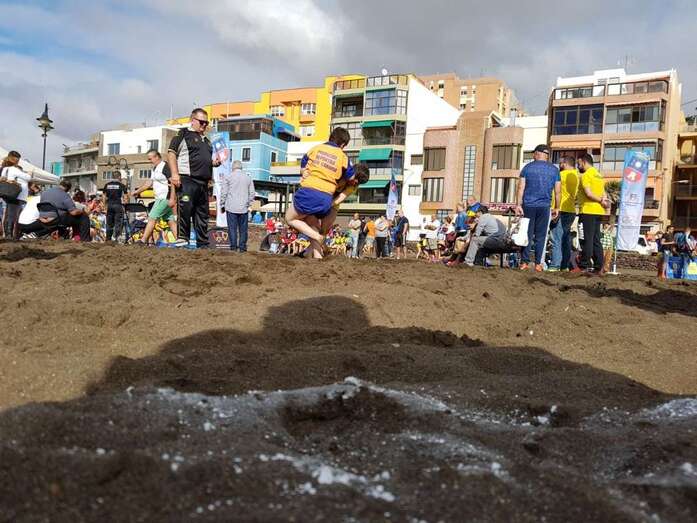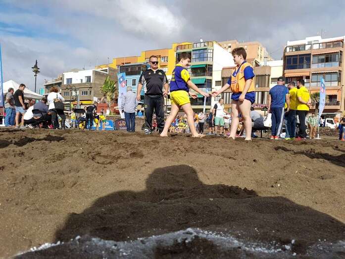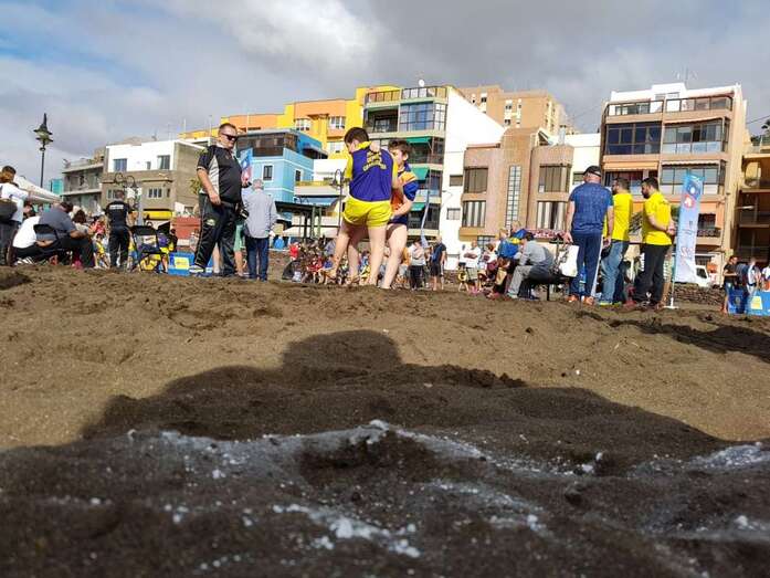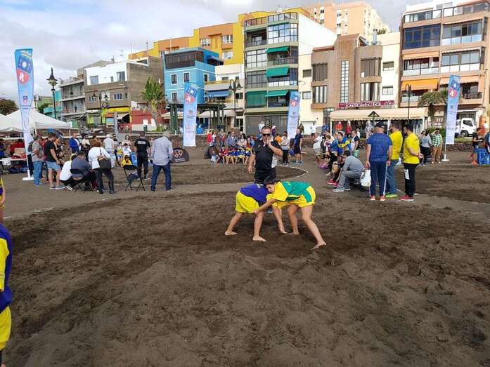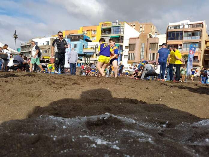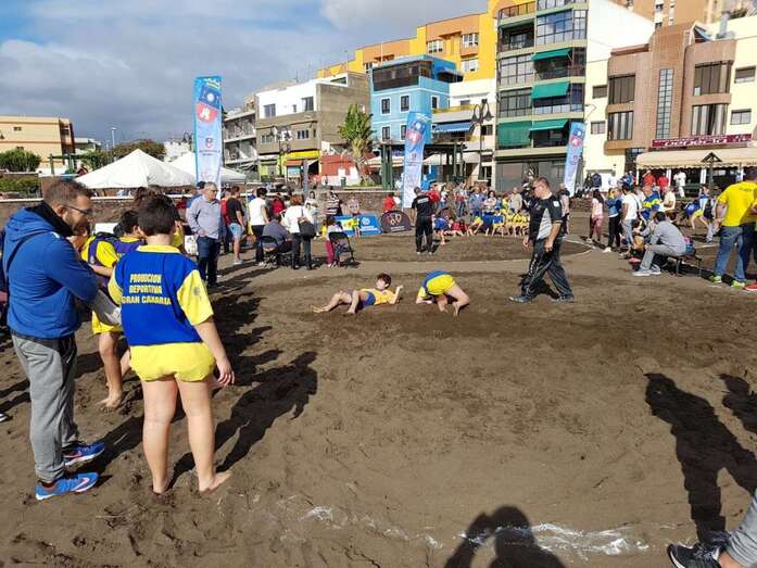 La playa de Melenara fue escenario este sábado, a partir de las 10.00 horas, del Encuentro Insular de Escuelas de Lucha Canaria, que contó con la participación de unos 200 luchadores de diferentes clubes de Gran Canaria.