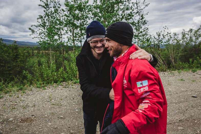 Una veintena de personas lo reciben en mitad de la nada, al borde mismo de donde el ser humano ha llegado como colectivo, desde donde sólo los individuos dan ese paso de fe para adentrarse en lo salvaje. Familias enteras en mitad de la nada y del todo, unidas para animar las últimas zancadas de Marcos en Alaska. El gran Mike, fuerte, animoso y bonachón, llora en libertad.