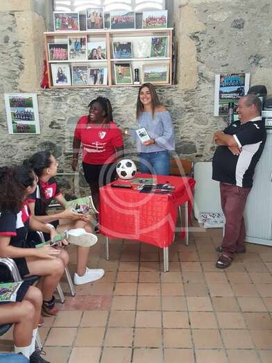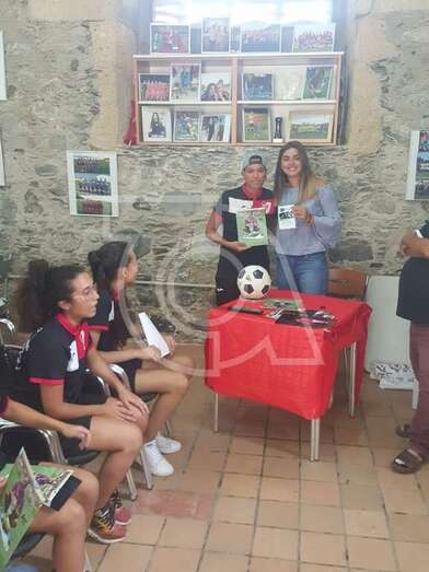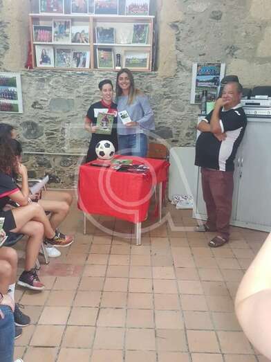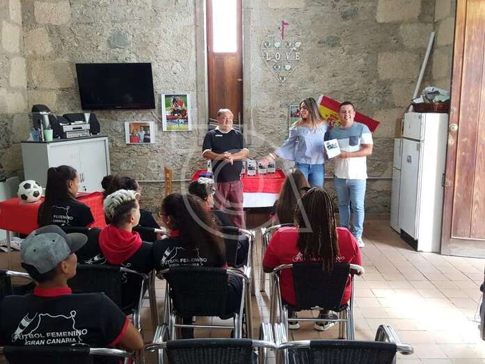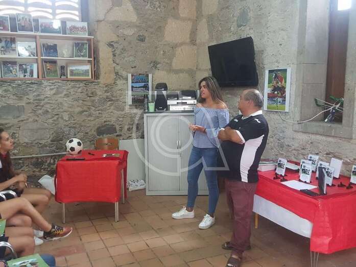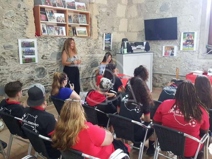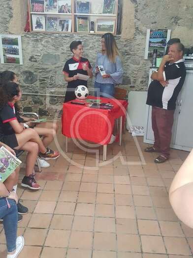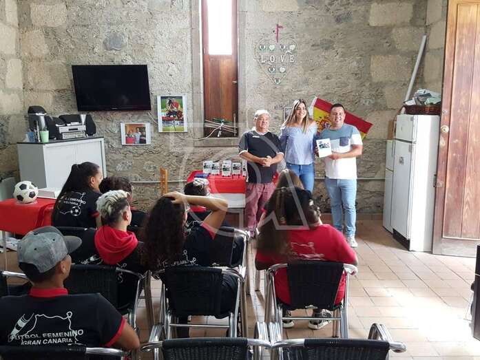 Telde.- La guardameta internacional teldense María Isabel Rodríguez (Misa), que juega en el Atlético de Madrid, participó esta tarde en el acto de clausura de la temporada 2017-2018 del equipo femenino de fútbol del Club Vallinamar, del Valle de Jinámar.
