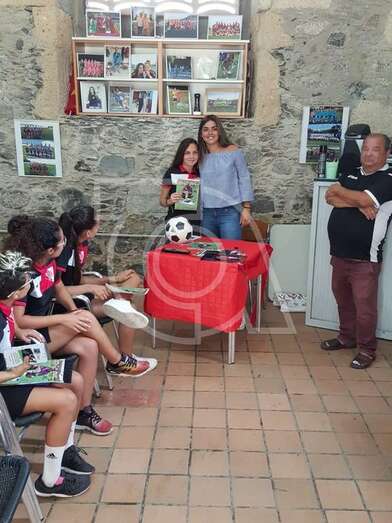 La joven cancerbera, natural de La Garita, firmó autógrafos.
