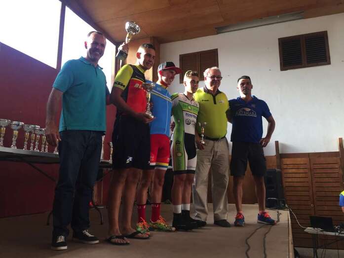 Derio Rodríguez (i) y su sobrino Pablo (d), junto a Carmen Chirino, campeona de Canarias de Contrarreloj en categoría cadete (Foto TA). Derio Rodríguez (i) y su sobrino Pablo (d), junto a Carmen Chirino, campeona de Canarias de Contrarreloj en categoría cadete (Foto TA).