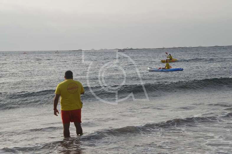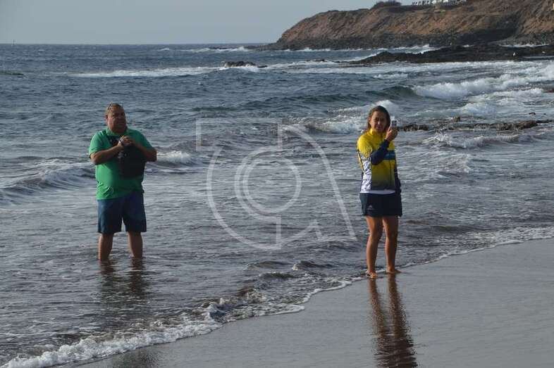 El concejal de Deportes, Diego Ojeda, estuvo desde el primer momento siguiendo la competición, que se inició unos minutos después de las 9.00 horas cuando dio la salida de la prueba de natación, primero a las féminas y luego a los varones, en el centro de la playa de Salinetas.