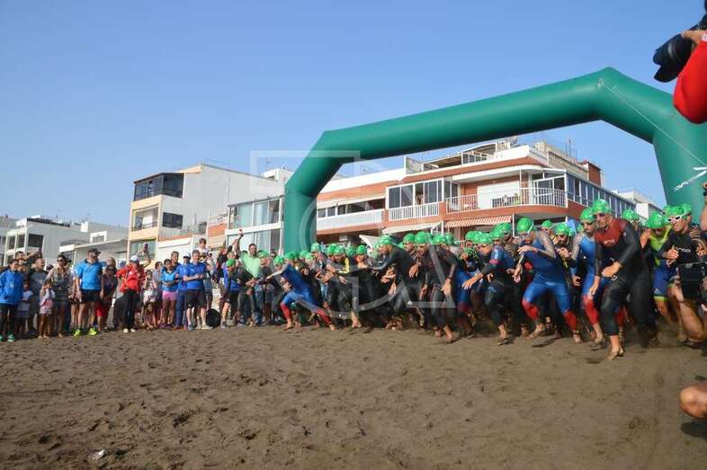 Ricardo Hernández, que ganó la competición el pasado año con el equipo Free Motión, se impuso también con autoridad en la celebrada en esta jornada en la playa teldense a partir de las 9.15 horas. Empleó un tiempo de 1:04:15 en cumplimentar los 750 metros en el circuito de aguas de Salinetas, los 20 kilómetros pedaleando por el vial costero y en el segmento de 5 kilómetros de atletismo por esta carretera en el tramo comprendido por la calle de Sebastián Álvarez Jiménez (Cinsa-Ikea).
