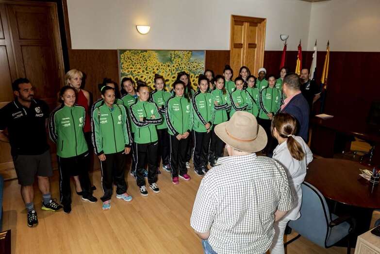 La jugadora y capitana María González se mostró "encantada con este tipo de actos fundamentales y que nos dejan muy buen sabor de boca. La alcaldesa de Telde siempre nos apoya y nos recibe, en lo malo y en lo bueno, y hasta ha acudido a recibirnos al aeropuerto cuando hemos perdido y eso es muy de agradecer".