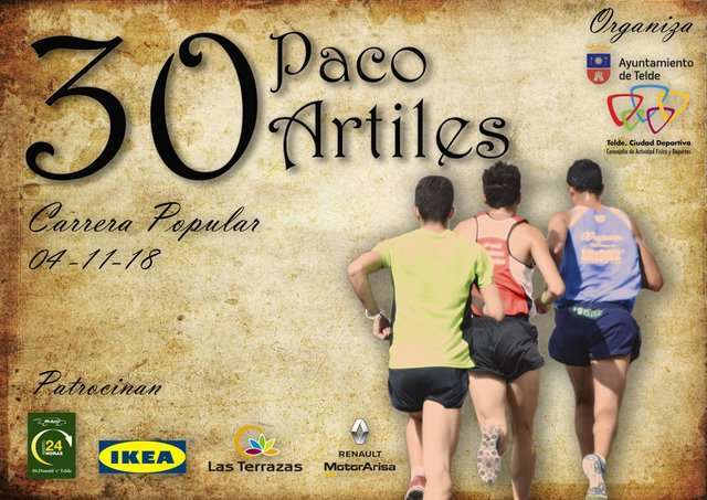 La 30º Carrera Popular Paco Artiles, organizada por la Concejalía de Actividad Física y Deportes, ha contado con el patrocinio de Renault Motor Arisa en Telde, IKEA, CC Las Terrazas y McDonald´s Telde y la colaboración de Physiorelax, Coca-Cola, Begoña Ferrero, Lude Servicios, Tirma, Cumba, Bimbo, Panadería Faycanes y Spa Kinesia.