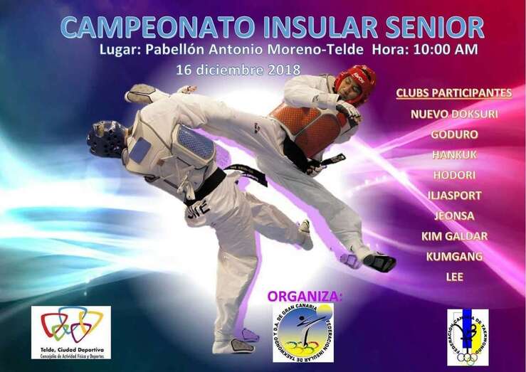 Telde.- El Pabellón Insular Antonio Moreno de Las Remudas fue escenario este domingo del Campeonato Insular Sénior de Gran Canaria de Taekwondo y Disciplinas Asociadas, bajo la organización de la Federación Insular de Gran Canaria de Taekwondo y Disciplinas Asociadas.