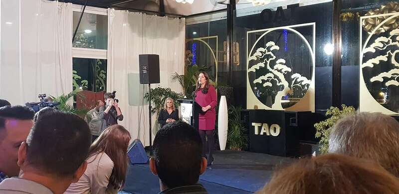Hernández y Ojeda compartieron con las guerreras de Telde el evento festivo que tuvo como marco el establecimiento de ocio Tao Garden, en la capital grancanaria, y en el que hubo actuaciones musicales, sorteos, etcétera.