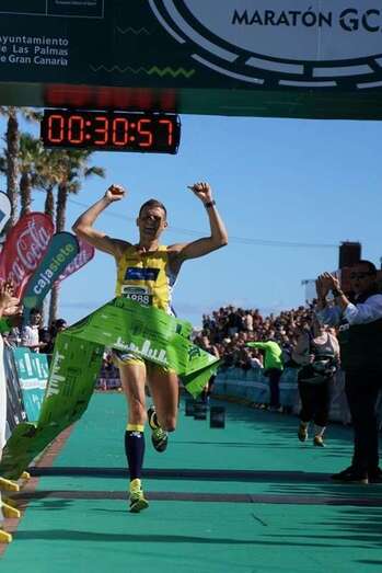 Telde.- El teldense Francisco Cabrera Galindo y Aroa Merino se proclamaron campeones de la carrera más rápida de la Cajasiete Gran Canaria Maratón, la 10K. El atleta grancanario empleó un tiempo de 30:56, un segundo menos que el registro que mantenía desde el 2012 Rubén Palomeque, mientras que la lanzaroteña se impuso con un tiempo de 36:10.