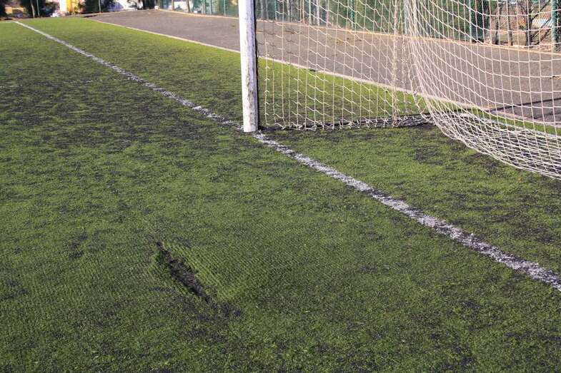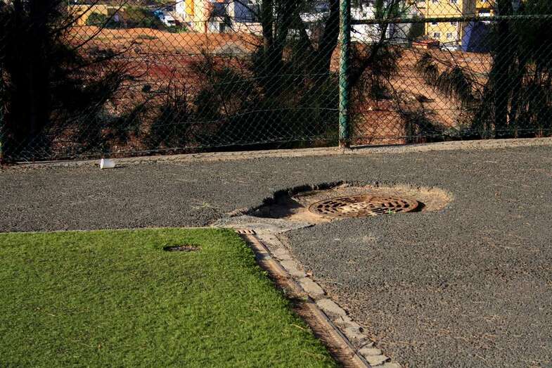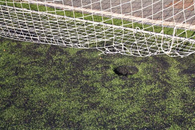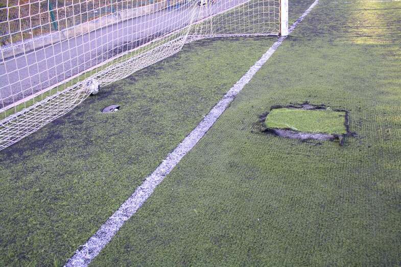 Vestuarios cochambrosos, hierros oxidados, un vallado destartalado por completo, un césped maltrecho y lleno de parches y bocas de riego desprovistas de sus correspondientes protectores. Este es el aspecto que presentan las instalaciones municipales de Las Huesas.