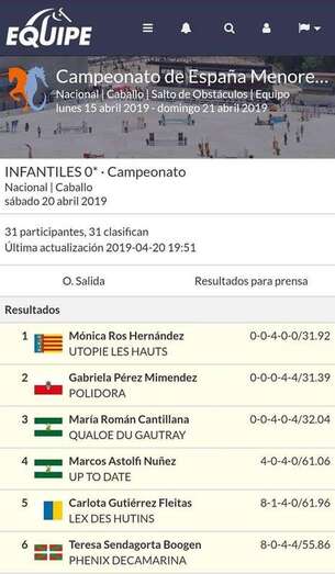 En el primer día de la prueba de 1.10, quedó en el puesto 28 de 46 participantes a lomo de un caballo que montaba por primera vez. En la segunda jornada de este concurso, la joven amazona teldense mejoró sus resultados. Fue novena de 32 jinetes y se clasificó para el campeonato de esta semana en Segovia.