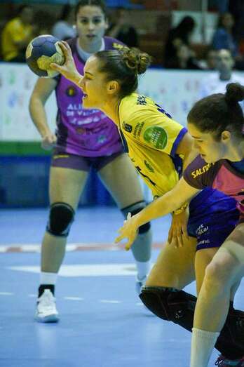 El Rocasa Gran Canaria frenaba las contras de un Aula que en ataque se topaba con la portera valenciana y con los palos, mientras pasaba el rodillo en ataque.